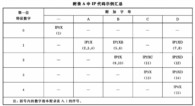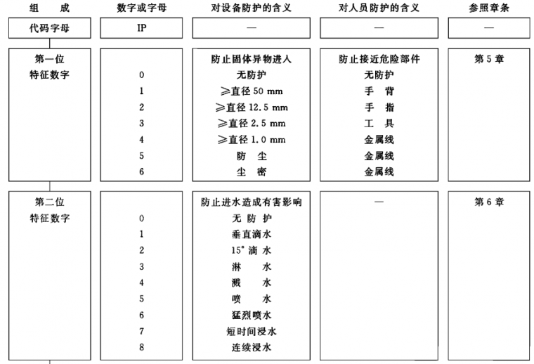 IP代碼各要素的簡要說明見下表。詳細說明見表中最后一欄所標明的章條。